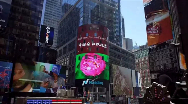 開幕式也登上了中央一套新聞聯播!近期中央電視臺對洛陽也特別關注,4月以來中央1套、2套、13套多次報道洛陽花會盛況。不光央視,洛陽牡丹花會還登上了*時代廣場的納斯達克大屏!作為紐約時代廣場的標志性建筑物,納斯達克大屏屏幕面積之大及世界影響之廣泛被譽為“世界屏”,也是“全球焦點、世界矚目”的焦點屏幕。