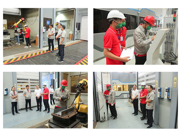 在攪拌車自動(dòng)焊接線實(shí)操考試現(xiàn)場,選手們對機(jī)器人進(jìn)行編程、設(shè)置參數(shù),根據(jù)工件需要焊接的位置,反復(fù)調(diào)整機(jī)器人的運(yùn)動(dòng)軌跡,力求做到焊接時(shí)的準(zhǔn)確度。裁判員們根據(jù)程序編寫、焊接效率、焊接位置、焊縫完整度等指標(biāo)進(jìn)行評判。賈主席一行在考試工位前駐足,不時(shí)詢問設(shè)備運(yùn)行情況,詳細(xì)了解選手們操作流程,對大家精彩表現(xiàn)表示肯定。