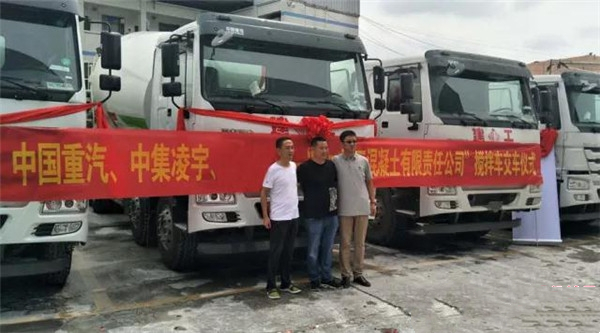上周,西南某城,中集凌宇聯(lián)合*重汽和當(dāng)?shù)卮砩坦餐e辦了對(duì)某混凝土集團(tuán)公司20臺(tái)攪拌車的交車儀式。