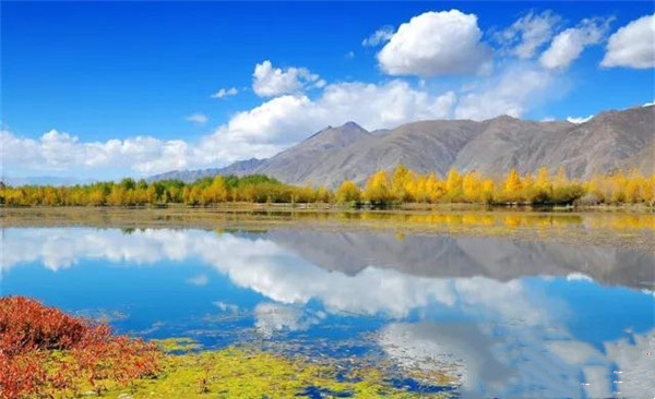 皚皚的白雪映著綠地,大小湖泊泛著銀光,公路與鐵路曲折蜿蜒,時(shí)常見到成群的牛羊——這里就是西藏。