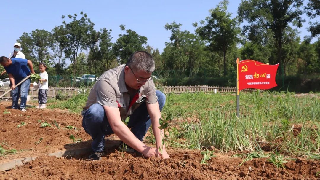 同志們分工協作,在有經驗的老同志指導和示范下,依次開展松土、起壟、插秧、澆水、培土等工作。汗水滴灑在泥土里,歡聲笑語回蕩在空氣中。活動中,還有不少黨員帶著孩子來到現場,讓祖國的下一代在了解種菜過程的同時,體驗勞動果實的來之不易。